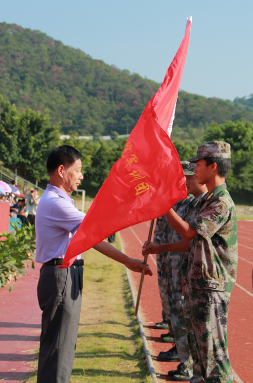 动员大会伊始,大一新生们在嘹亮的国歌声中开启了他们大学生活新的一页——军训。学院副院长丘兆福教授为军训团授团旗并宣读军事训练课程计划安排,张方林副院长为各营授营旗。2012级新生军训时间为9月16日—9月28日,共13天。