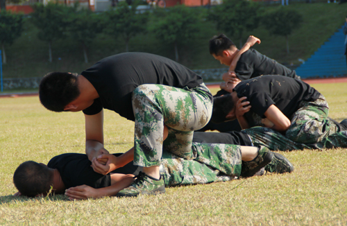 2012级新生军训动员大会在承训部队教官们精彩劲道的格斗表演中完满落幕。