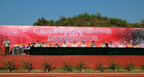 本报讯(记者 彭海波 曾妙焮)9月16日早上八点,和煦的阳光夹杂着缕缕清风,华商学院田径场上站满了身穿亮丽迷彩服的大一新生们,承训部队教官以整齐划一,训练有素的姿态入场。广东商学院华商学院2012级新生军训动员大会隆重举行。与会的领导有学院丘兆福副院长,军训团政委学院党委黄虹书记、军训团副团长学院副院长张方林教授,学生处邱会锋副处长,军训团团长李雄飞以及各系主任。大会由邓基泽副院长主持。