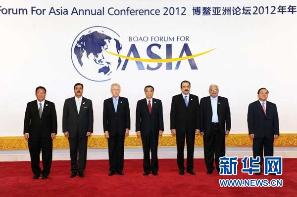 4月2日,博鳌亚洲论坛2012年年会在海南博鳌开幕。中共中央政治局常委、国务院副总理李克强出席开幕式并发表主旨演讲。这是论坛开幕前,李克强同与会外国领导人合影。新华社记者饶爱民摄
