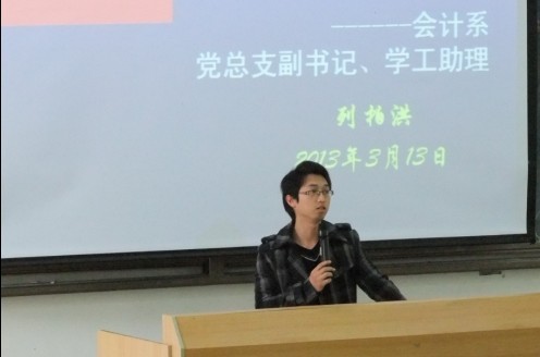 在励志楼B408,会计系党支部副书记列柏洪老师以“党的性质”为切入点,讲解了党的宗旨及指导思想,具体论述了马克思列宁主义、毛泽东思想、邓小平理论、“三个代表”重要思想以及科学发展观,对其发展的历程和深刻内涵作了详细阐述。然后对在座的各学员讲述了如何做一名优秀党员,希望学员们能用高标准来要求自己。最后,课程在 “大学生在大学要学什么”的热烈讨论中结束。