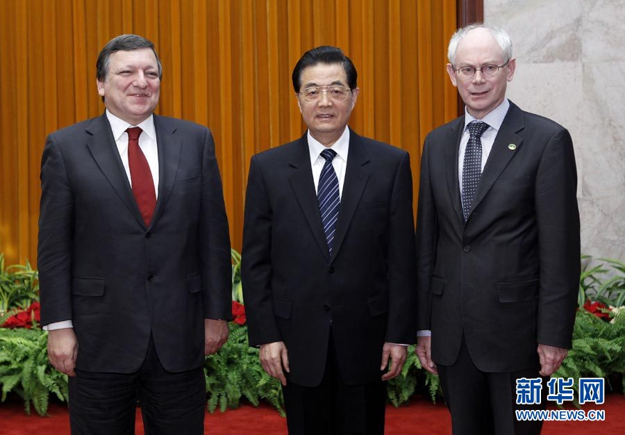 胡锦涛表示,面对复杂多变的国际形势,没有哪一个国家和国家集团能够独善其身、独自应对。世界的和平与发展需要各国同心协力,携手维护,共同促进。中方一贯重视欧盟在国际事务中的地位和作用,始终从战略高度和长远角度看待和发展中欧关系。我们坚定支持欧盟一体化建设,愿同欧方加强政治和战略对话,妥善处理彼此重大关切和敏感问题,深化全方位、宽领域、多层次合作,不断拓展双方利益融合,共同推动中欧全面战略伙伴关系不断取得新进展。