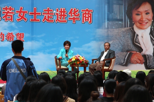 11月28日下午15:00,美国历史上首位华裔女市长陈李琬若女士应邀为我院师生作了题为《我的心路历程·你们的希望》的精彩演讲,受到广大师生热烈的欢迎。增城市叶鸿副市长、学院陈玉川院长、华商教育集团廖伊曼副总经理、党委黄虹书记、邓基泽副院长、张方林副院长等领导和嘉宾及学院各系师生共600余人出席了此次讲座,讲座由陈玉川院长主持。