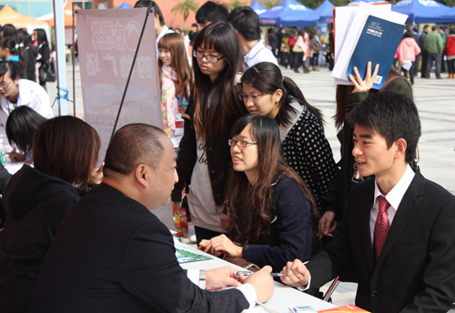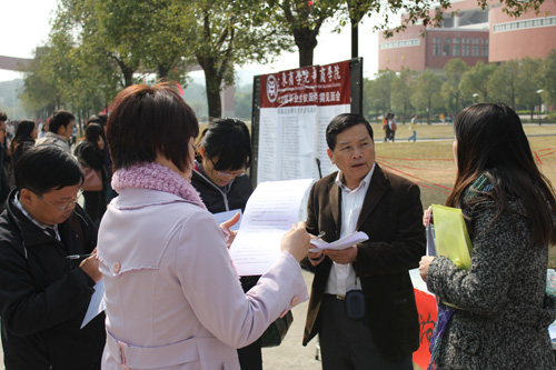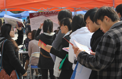 为进一步促进2012届毕业生就业,搭建毕业生与用人单位双向选择平台,12月23日上午,学院2012届毕业生校园供需见面会在中央图书馆广场举行。共有120多个单位来院参加供需见面会,其中包括汇丰银行、渣打银行、中国移动、南方人才等知名企业单位,提供就业岗位近千个,吸引了3200多名应届毕业生前往参加。