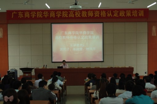 5月5日上午,广东省教师继续教育指导中心郭庆才主任一行莅临我院为我院教师开展了主题为《广东省2011年高校教师资格认定工作有关问题解答》的政策学习和培训。院人事处、各部门办公室主任及准备参加今年高校教师资格认定的教师共100多人参加了此次培训,培训由学院支戈壁副院长主持。
