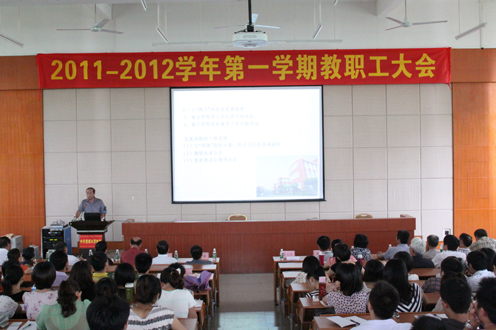 8月30日下午,我院2011—2012学年第一学期教职工大会于励志楼C208顺利召开。陈玉川院长、党委黄虹书记、邓基泽副院长、支戈壁副院长、张方林副院长,各中层干部以及全体教职工出席了会议。