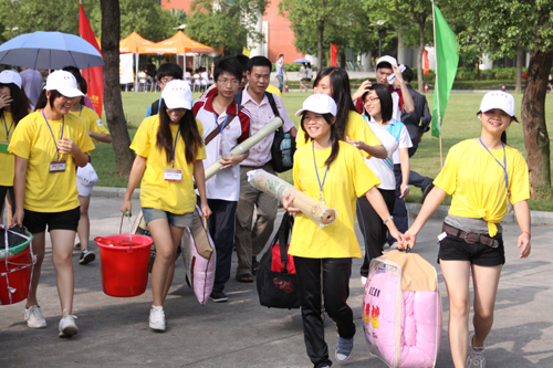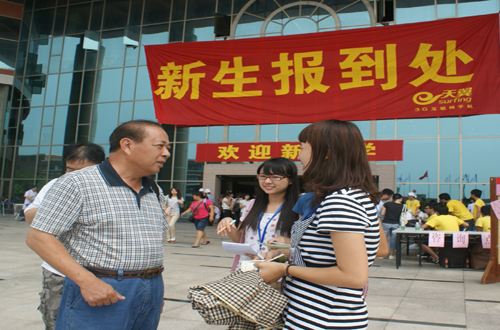 为做好2011年迎新工作,学院邓基泽副院长全天在现场指导工作。学院相关行政部门、教学系部,院学生会、院团委等学生组织以及教师、学生志愿者等共2000多人参加了迎新工作。学院在中央图书馆广场外设置了各系迎新大本营和接待点。图书馆一楼分别为各系的登记缴费点和新生咨询点,二楼为核准信息的教务处办理点。