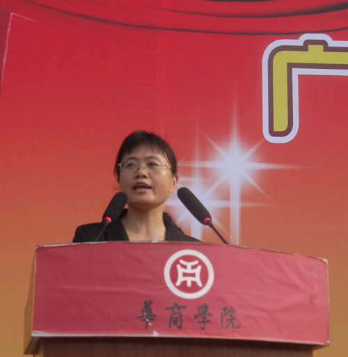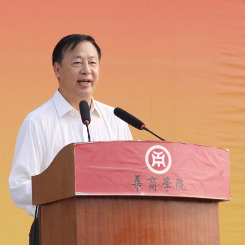 廖榕就董事长在典礼上致辞,董事长对2011级新生的到来表示热烈的欢迎和诚挚的问候。他在致辞中表示,华商学院建校六年来所取得的成绩离不开华商人的共同奋斗,实现“一流高校、百年名校”的目标更需不懈努力,他对新生们寄予了四点厚望:厚德以载物、励志以建树、博学以征帆、创新以进步。