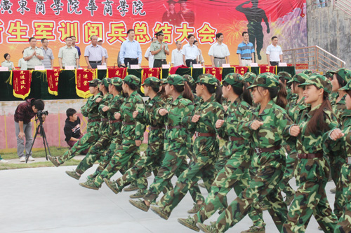 9月26日上午,我院2011年学生军训阅兵总结大会在田径场隆重举行。广东省政协常委、学院董事长、军训团名誉团长廖榕就博士,学院陈玉川院长、丘兆福副院长、党委黄虹书记、邓基泽副院长、张方林副院长,军训团李雄飞团长以及各系部主任等领导出席了本次阅兵总结大会。本次阅兵总结大会由阅兵式、汇报表演、总结颁奖三项议程组成。