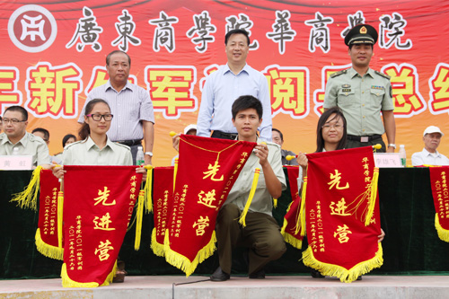 学院邓基泽副院长宣读了新生军训团嘉奖令,表彰在军训中涌现出的先进集体和个人。授予军训团一营、四营、七营“先进营”称号;授予军训团九连、十二连、二十一连“标兵连队”称号;授予军训团十六连、二十二连、二十三连“先进连队”称号;授予军训团四连、七连、十七连、十九连“精神文明连队”称号;授予军训团范伟增等506人“先进标兵”称号。在主席台上就坐的领导和嘉宾给获奖连队和个人代表进行了颁奖。