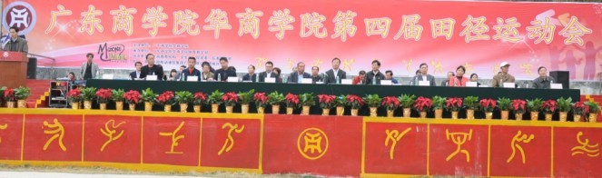 在第十六届亚运会、残运会在广州隆重举办之际,广东商学院华商学院第四届田径运动会开幕式于12月10 日早上八点半于学院田径场拉开帷幕。学院领导廖榕就董事长、陈玉川院长、丘兆福副院长、黄虹书记、邓基泽副院长、支戈壁副院长、张方林副院长、张方林副院长等出席了开幕式。开幕式由学院张方林副院长主持。