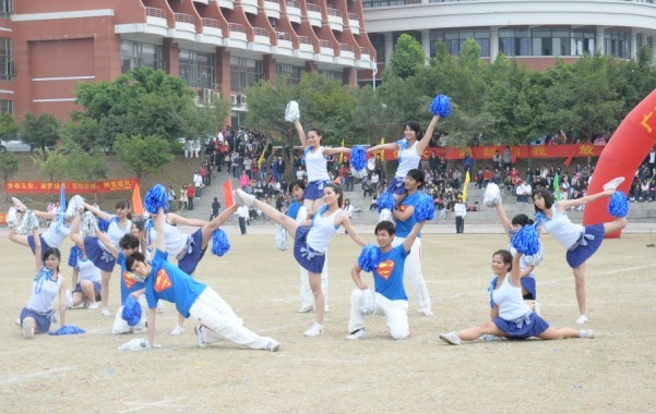 精彩绝伦的表演过后,青春动感的啦啦操比赛正式开始。各系的啦啦队争相竞技,表演异彩纷呈,啦啦队员们服装靓丽,手握花球,舞动青春,尽情释放活力,用自己充满激情的表演为运动健儿们打气加油,也为校运会的圆满举办送上祝福。