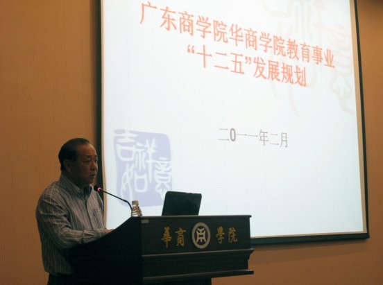 他在发言中讲到,“十一五”期间,我院在邓小平理论和“三个代表”重要思想指引下,贯彻落实党和国家的教育方针、教育部《教育事业发展“十一五”规划》、《2006—2010年教育振兴行动计划》和《广东省教育事业“十一五”计划》,解放思想,抢抓机遇,艰苦创业,奋发进取,教育事业成效显著,学校面貌发生较大变化,实现了阶段性快速发展的目标。