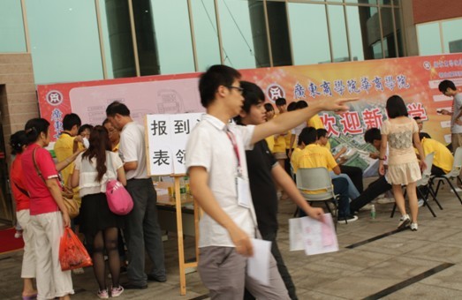 11日早上七点,中央图书馆内及广场外的各系迎新大本营早已驻满热情澎湃的迎新志愿者,志愿者们早已整装待发,分布于各个接待点,各就各位,耐心地等待每一位新同学的到来。在接待点、注册点和大本营里,各系志愿者热情接待陆陆续续到来的新生,细心帮新生看守行李,迅速地带他们进行注册,分配宿舍。然后志愿者们大包小包的扛着行李,带他们入住宿舍。全体工作人员有条不紊的带领新生完成报到的所有程序。