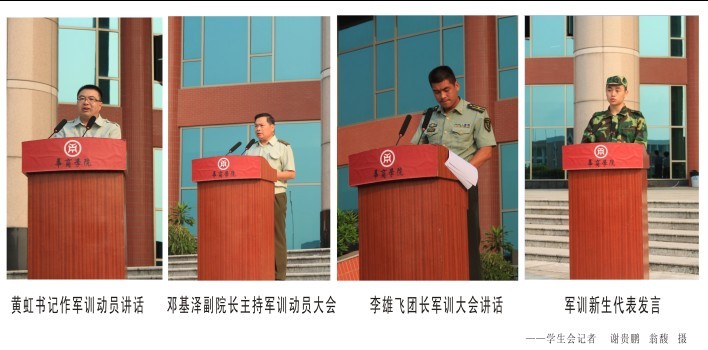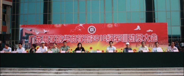 2010年9月18日,2010届新生军训动员大会在我院图书馆广场隆重举行。近5000名2010级新生身着军装,精神抖擞成方队集结图书馆广场,迎着秋日早晨习习清爽凉风接受军训动员。华商教育集团廖伊曼副总经理,军训团李雄飞团长,学院党委黄虹书记,学院邓基泽副院长,张方林副院长,军训团副团长邱会锋、周庆华、余建尧及各系主任出席此次新生动员大会。学院邓基泽副院长主持军训动员大会。