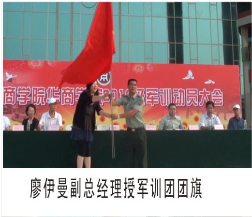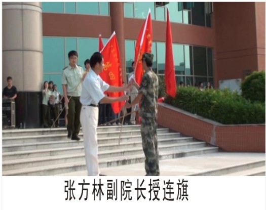 八时整,动员大会正式开始。在隆重庄严的升旗仪式后,廖伊曼副总经理向军训团授团旗,张方林副院长等向授军训团各连授连旗,本次军训团总共分为10个营20个连90个排近5000名学员。承训部队派出90多名教官负责2010级新生军事训练工作。