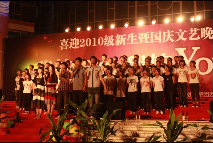 喜逢国庆,举国欢腾。9月29日晚上,迎着飒爽的秋风,由广东商学院华商学院主办,院学生处、院团委和院学生会承办“我的90我的Young”为主题的喜迎2010新生暨国庆文艺晚会在中央图书馆广场隆重举行。丘兆福副院长、黄虹书记、邓基泽副院长以及各处、室、系部的领导出席晚会。