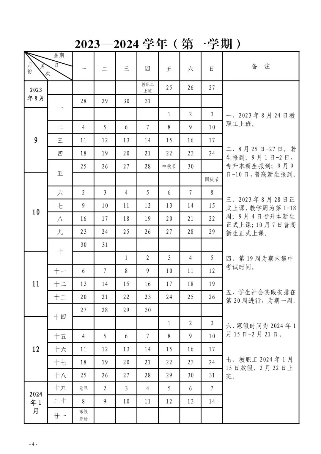 〔2023〕广州华商学院2023-2024学年校历及两校区上课和乘车时间